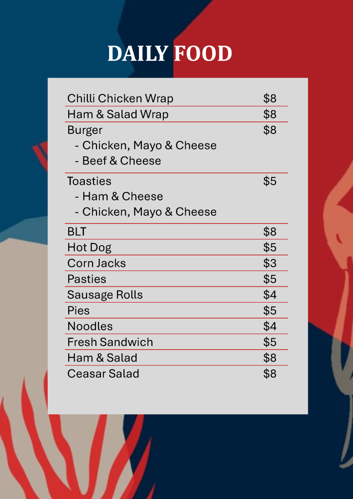 Karratha SHS Canteen offers a variety of nutritious food options. Vegetarian options are also available.